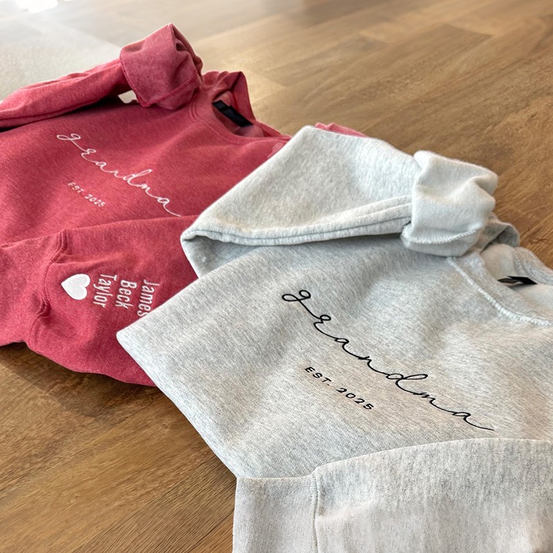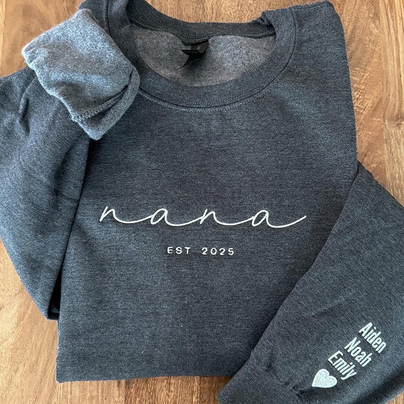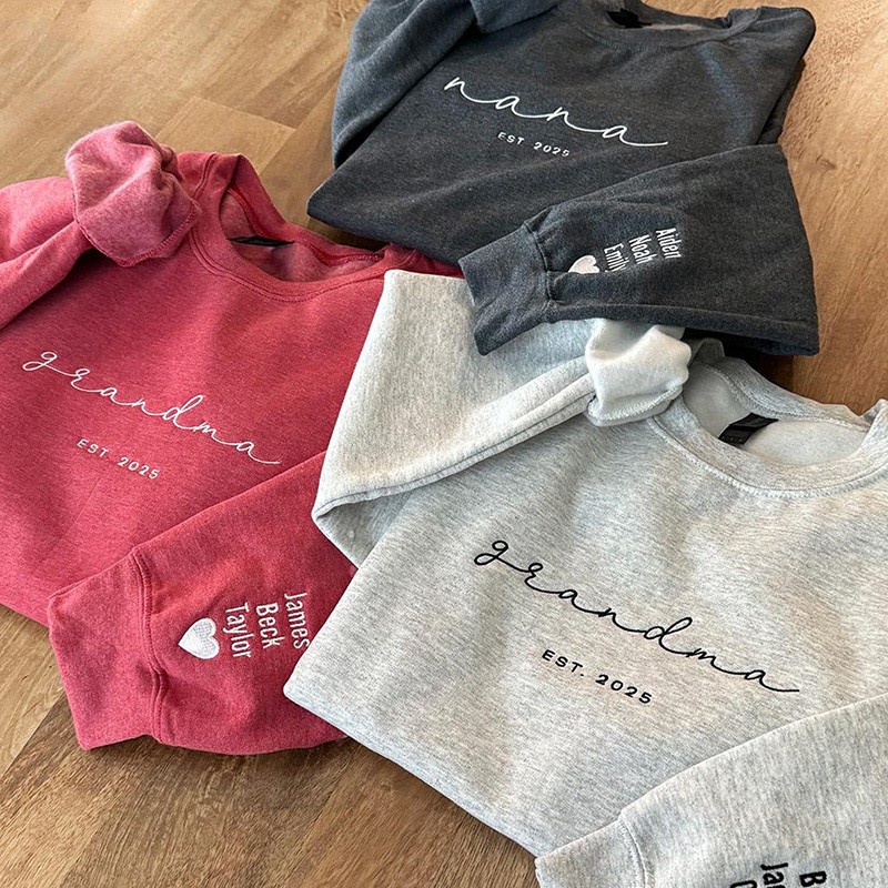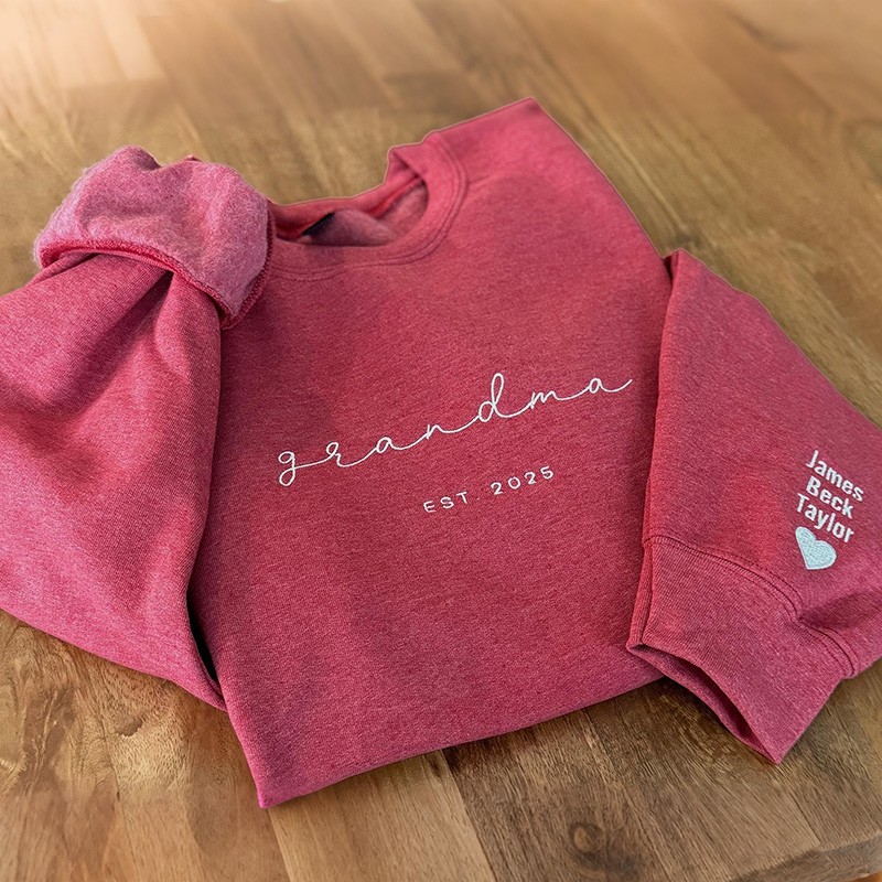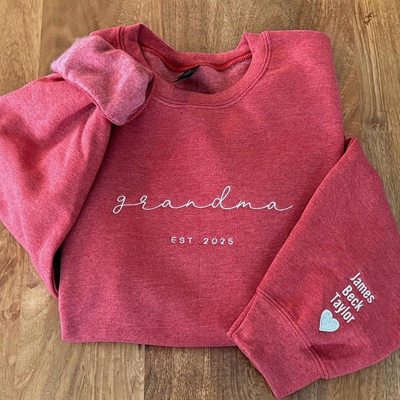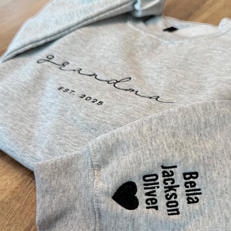 Custom Embroidered Mama Grandma Sweatshirt With Kids Names On Sleeve
