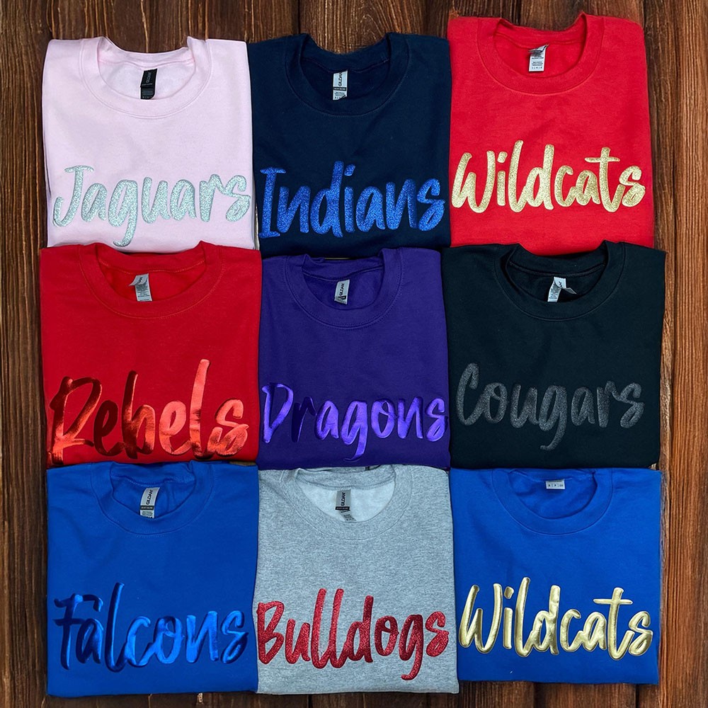 Custom Team Name Sweatshirt, Mascot Sweatshirt, Puff Print, Embossed Print, Gift for Mom, Christmas Gift Idea, School Spirit Sweatshirt