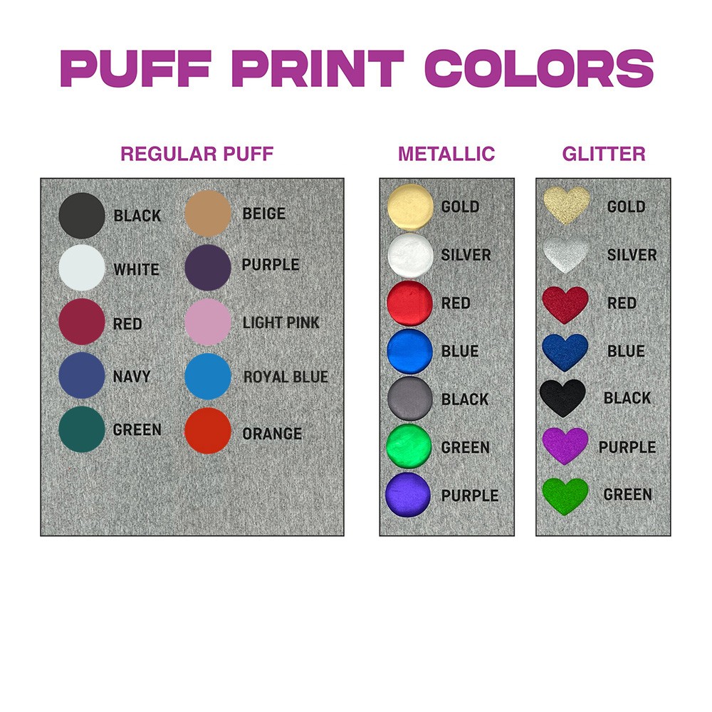 SLEEVE TEXT MUST BE SAME COLOR AS CHEST TEXT! - We're only able to use ONE COLOR PUFF Per apparel item.