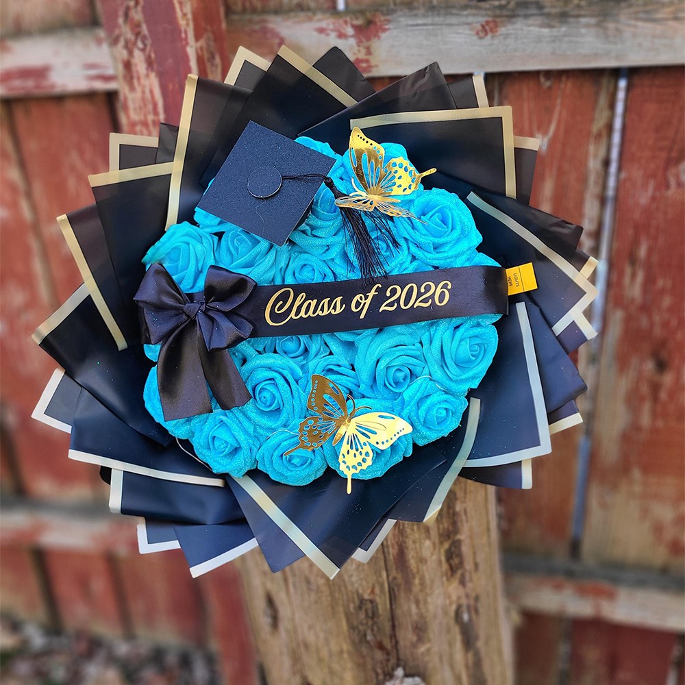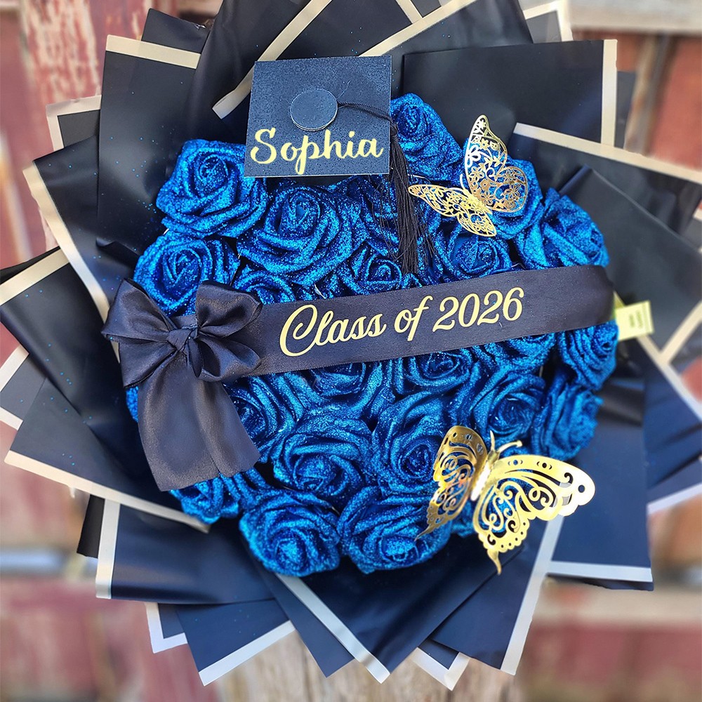 Glitter Roses Graduation Bouquet: Personalized Class of 2026 Gift