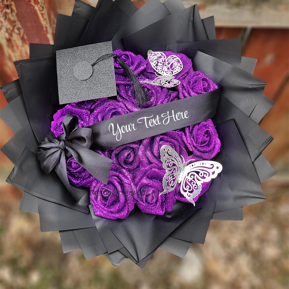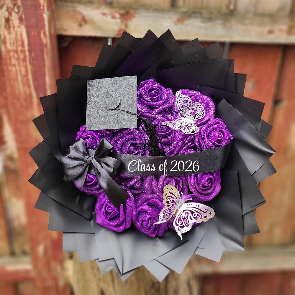 Glitter Roses Graduation Bouquet: Personalized Class of 2026 Gift