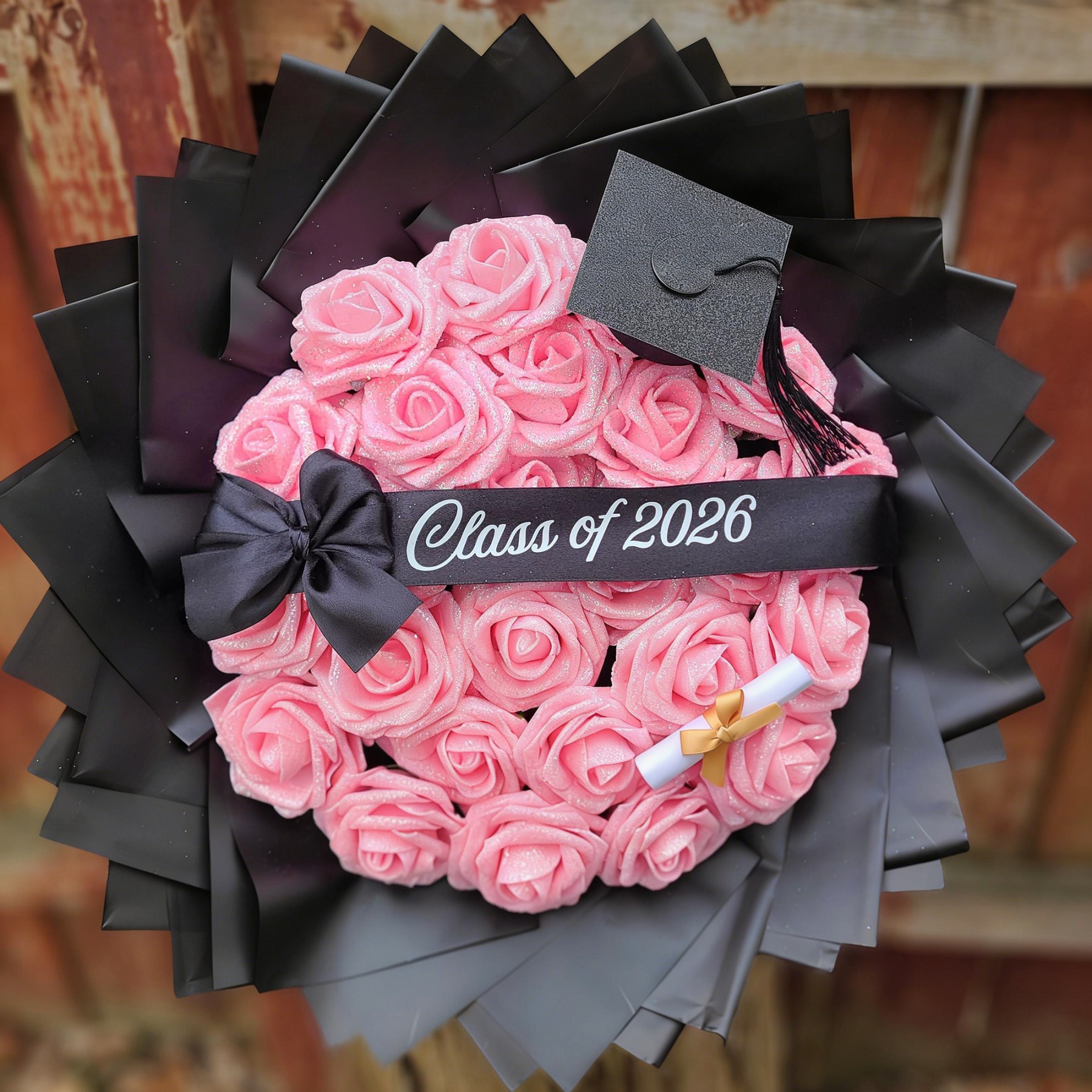 Glitter Roses Graduation Bouquet: Personalized Class of 2026 Gift