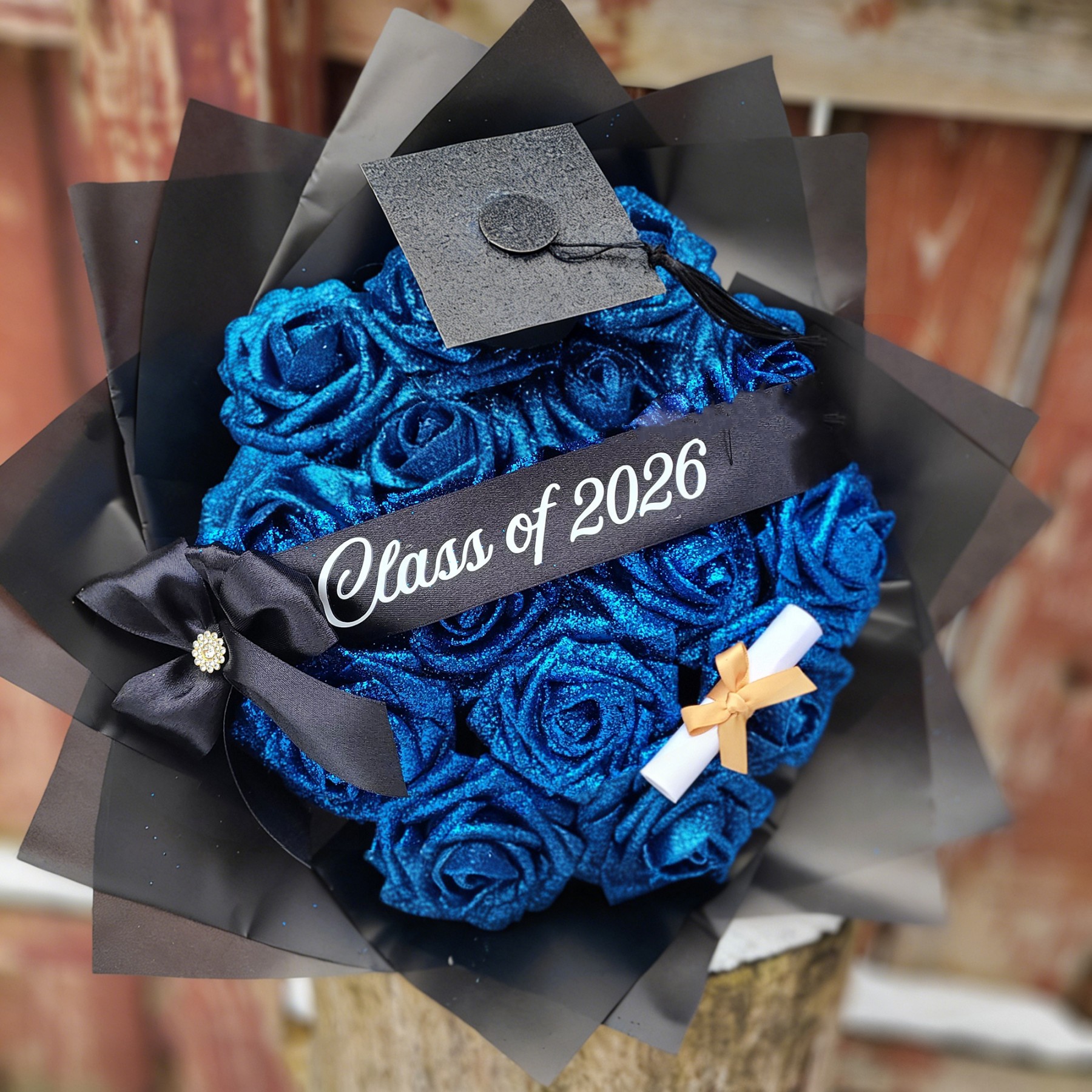 Glitter Roses Graduation Bouquet: Personalized Class of 2026 Gift