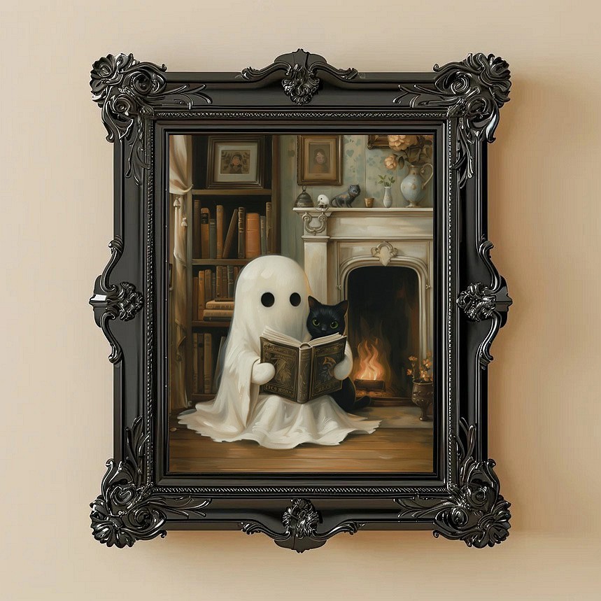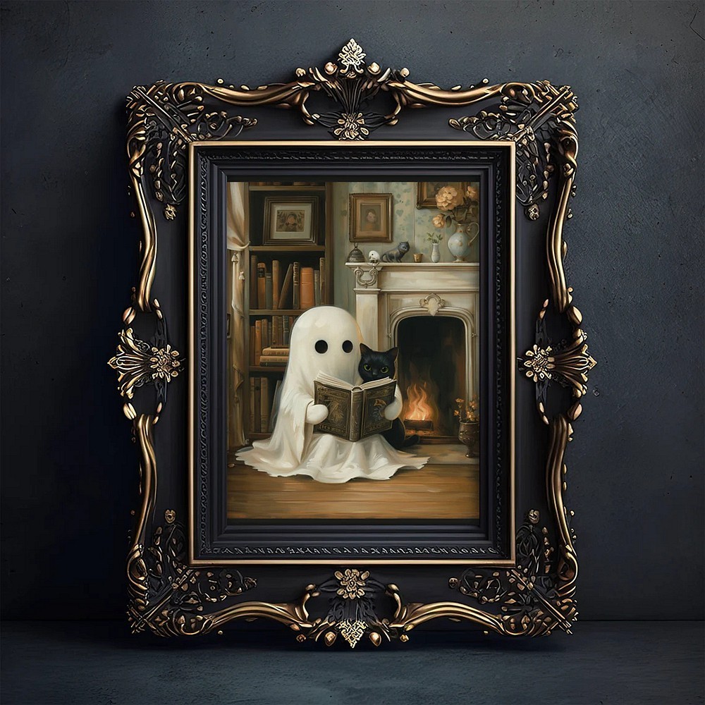 Halloween Cute Ghost and Black Cat Art Frame Halloween Decor