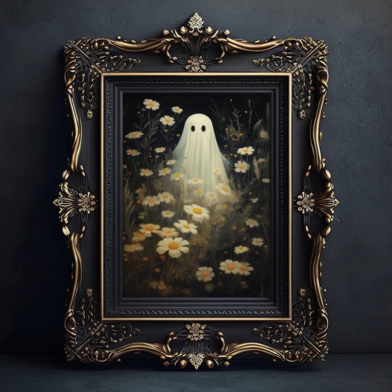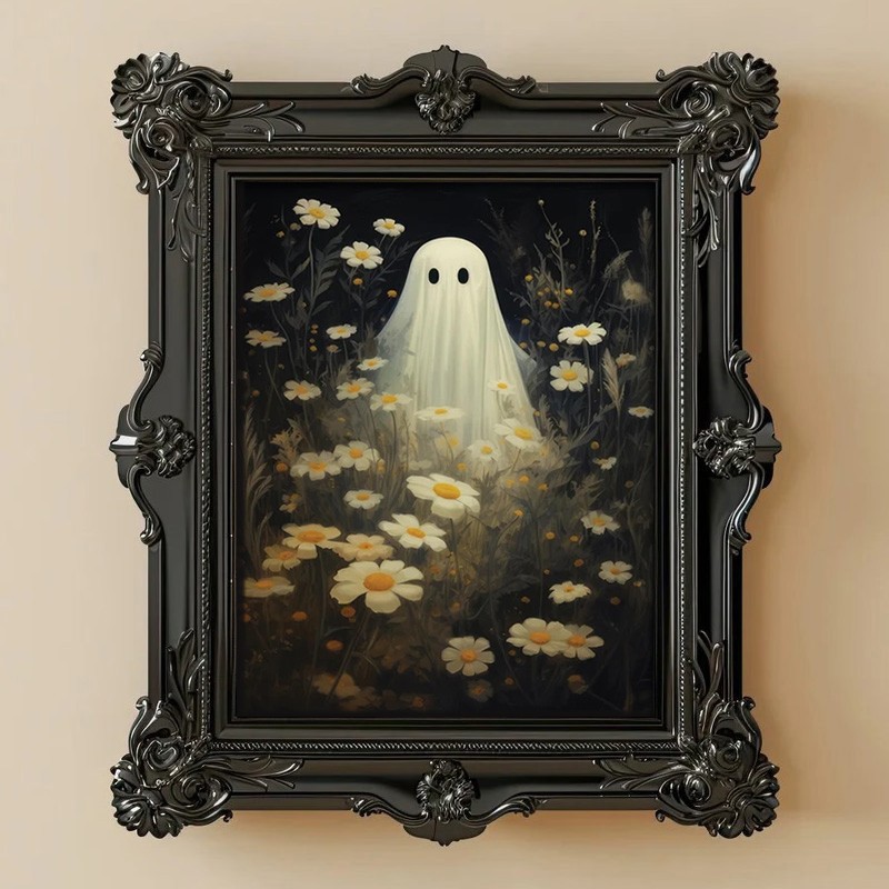 Halloween Floral Ghost Rustic Vintage Style Art Frame Halloween Decor