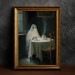 Halloween Ghost Drinking Tea Vintage Style Art Frame Halloween Decor