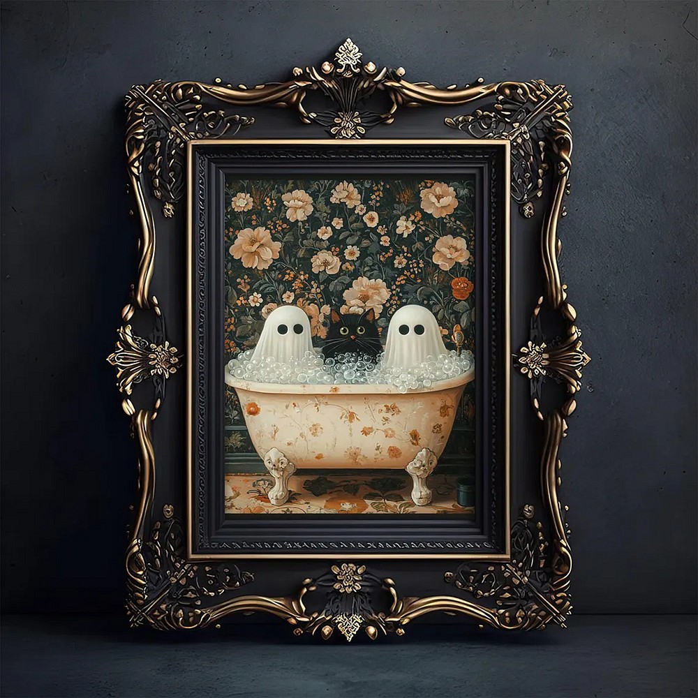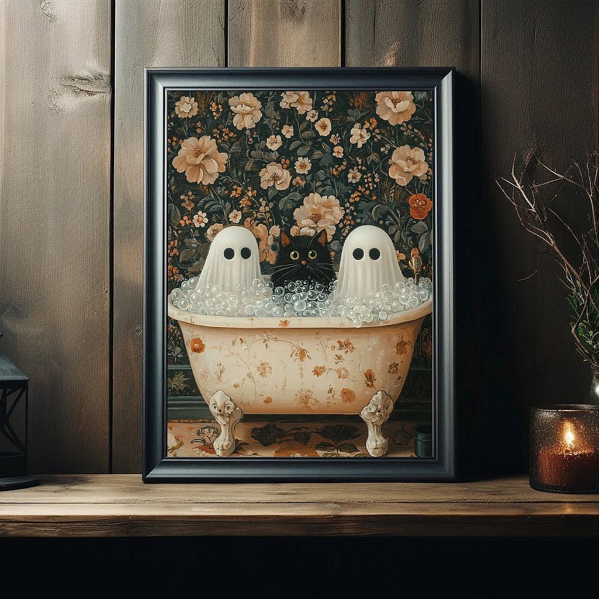 Halloween Ghosts and Cat in Bathtub Art Frame Halloween Decor