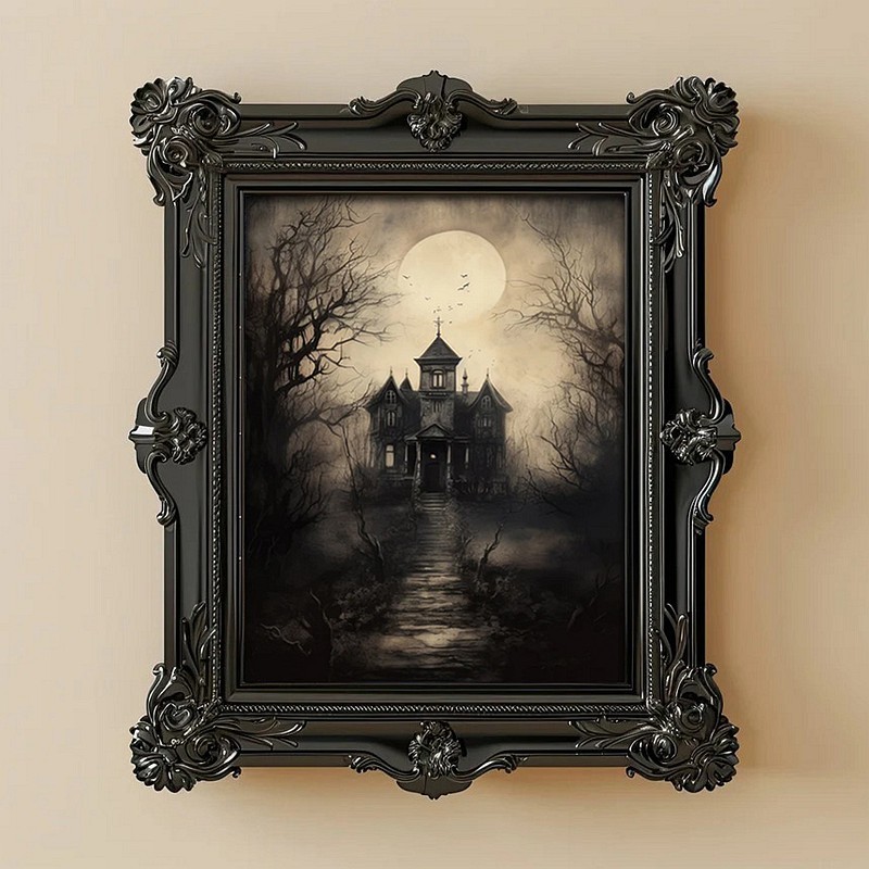 Halloween Haunted House Vintage Art Frame Halloween Decor