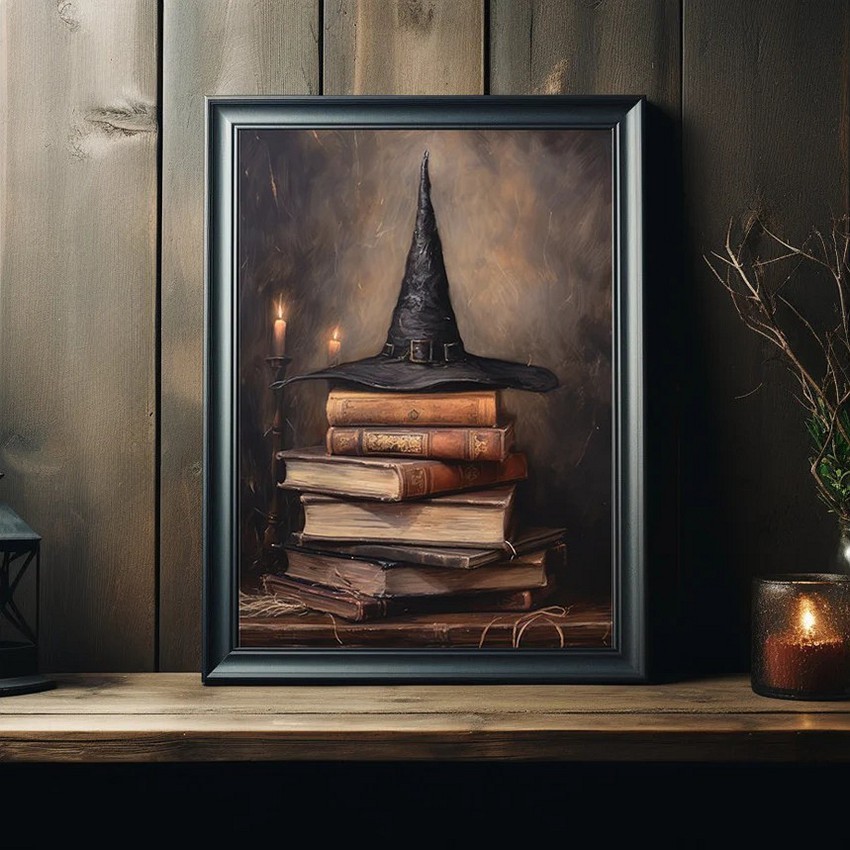 Halloween Vintage Neutral Witchy Spells Art Frame Halloween Decor