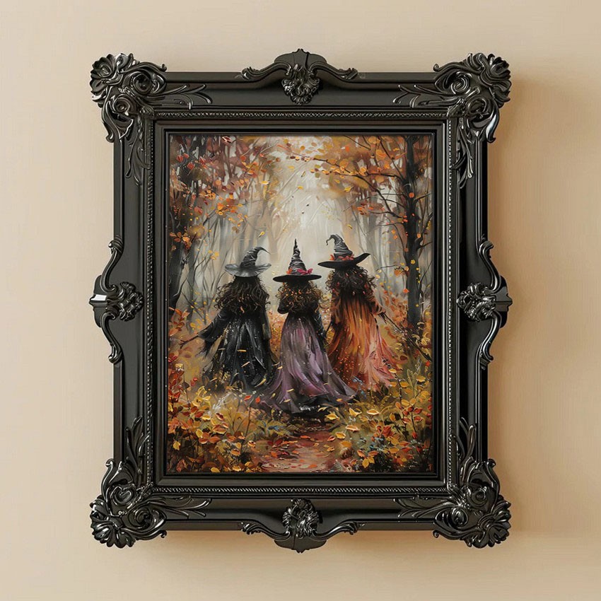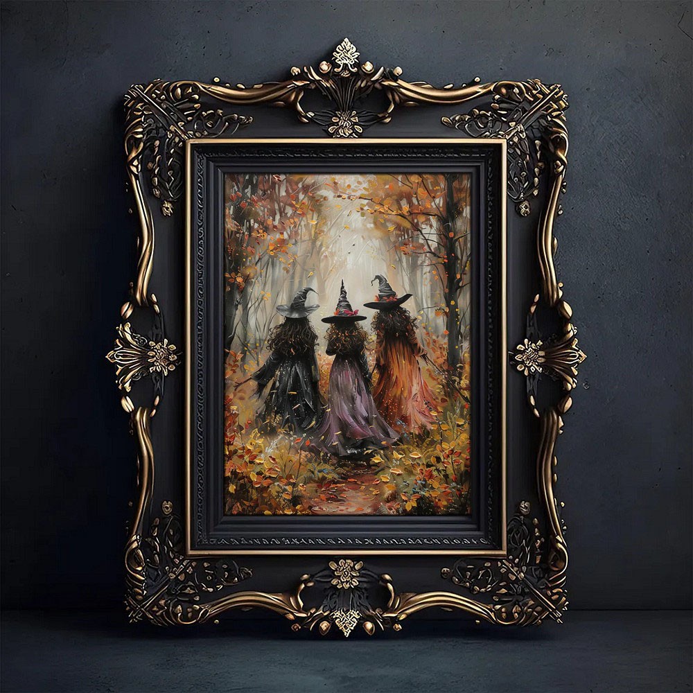 Halloween Vintage Three Witches In The Forest Art Frame Halloween Decor