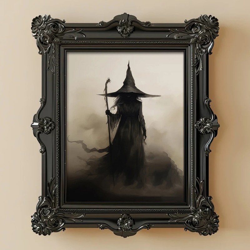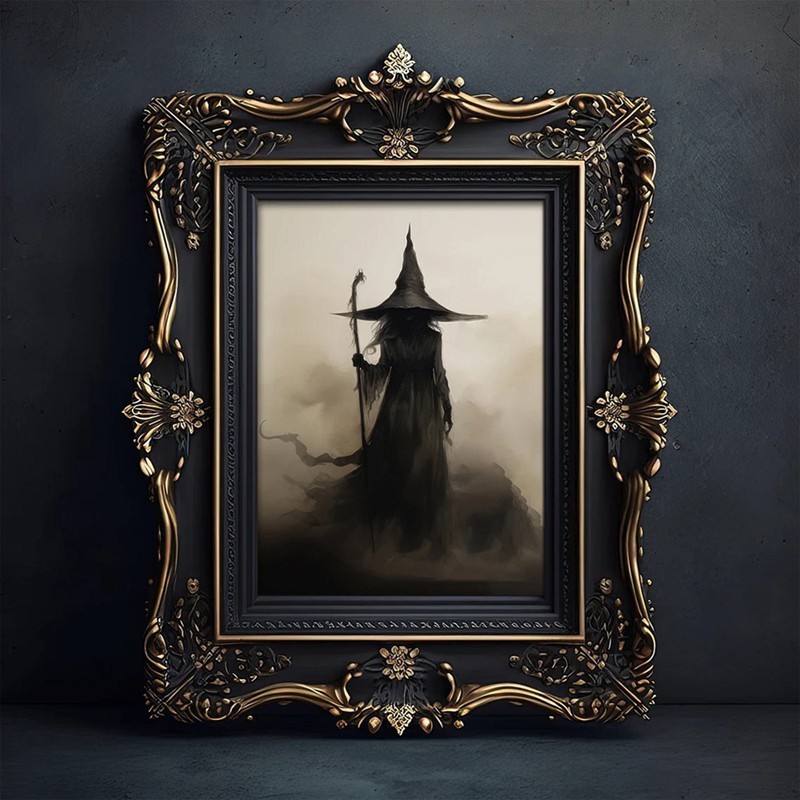 Halloween Witch Rustic Vintage Style Art Frame Halloween Decor