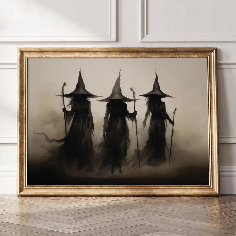 Halloween Witch Rustic Vintage Style Art Frame Halloween Decor