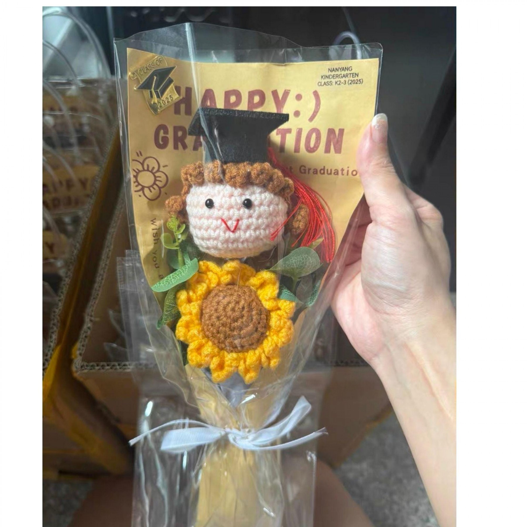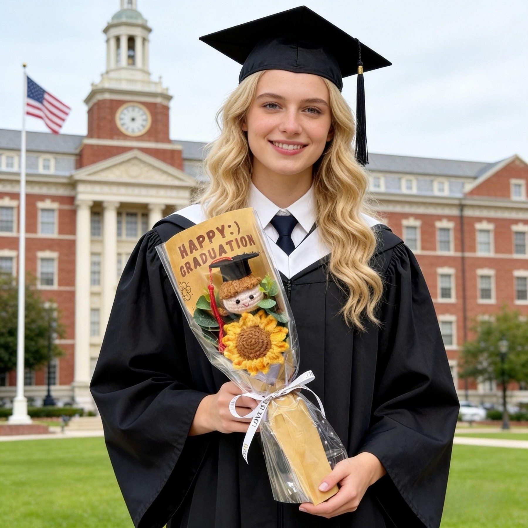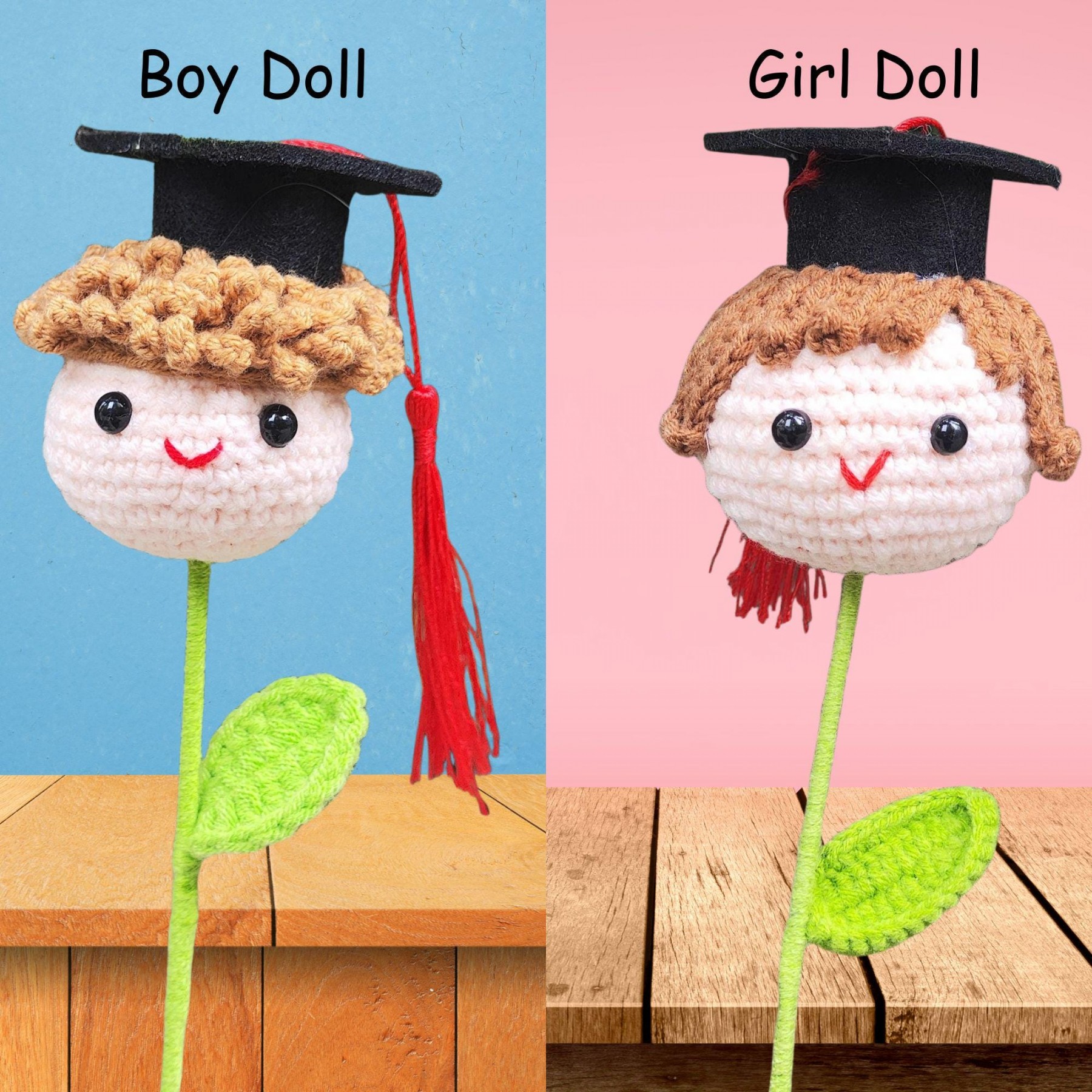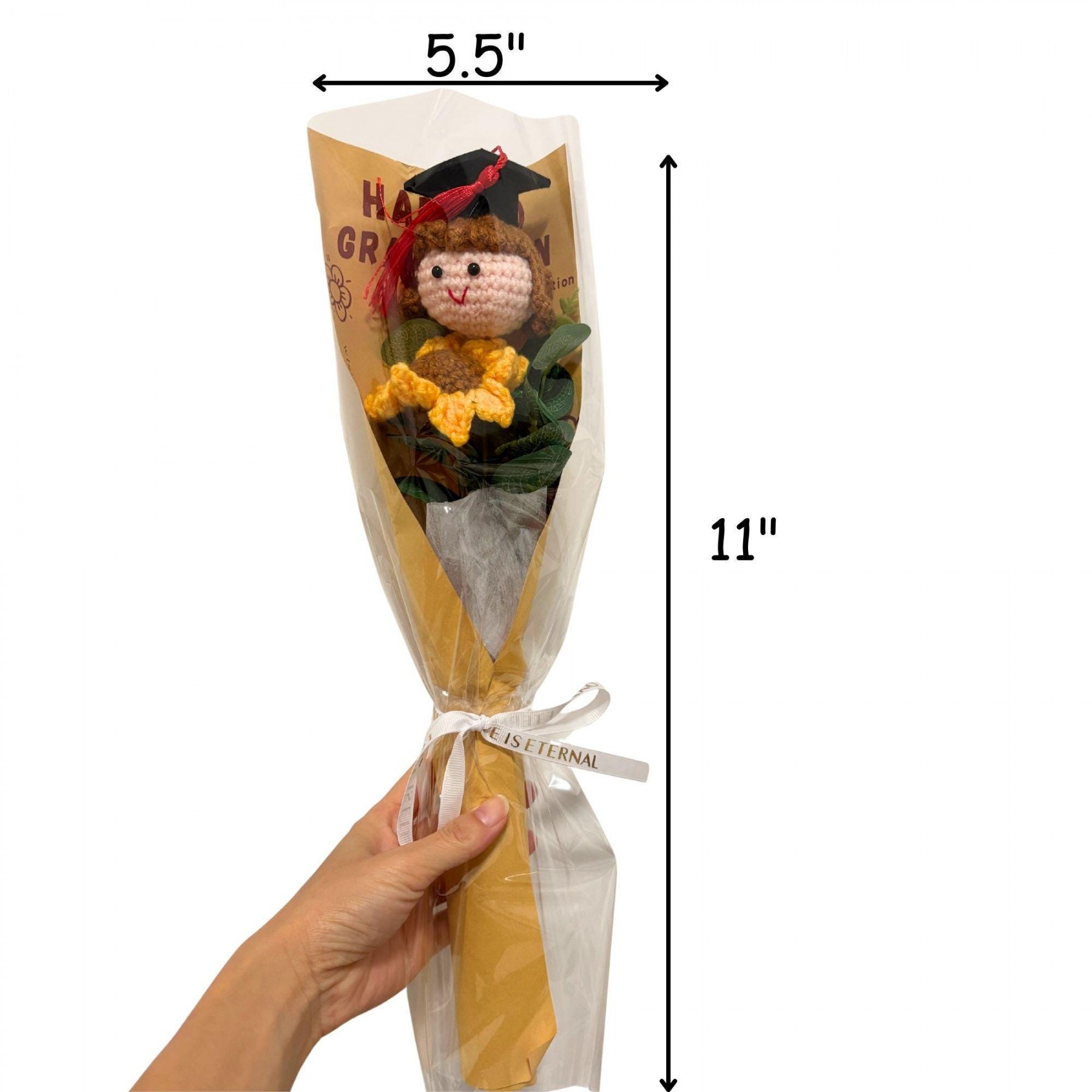 Handmade Crochet Graduation Bouquet with Knitted Graduate Doll Personalized Keepsake Gift