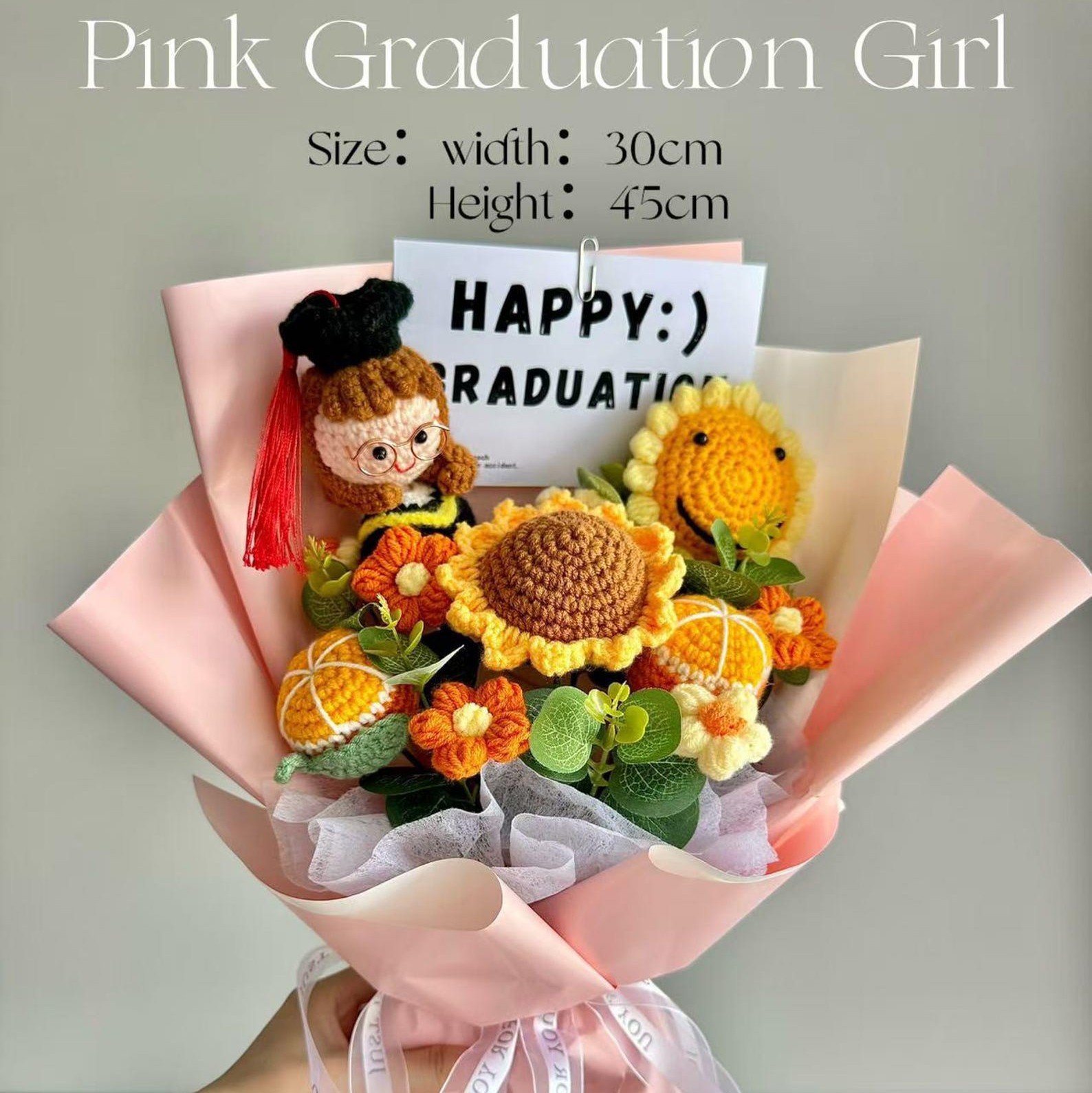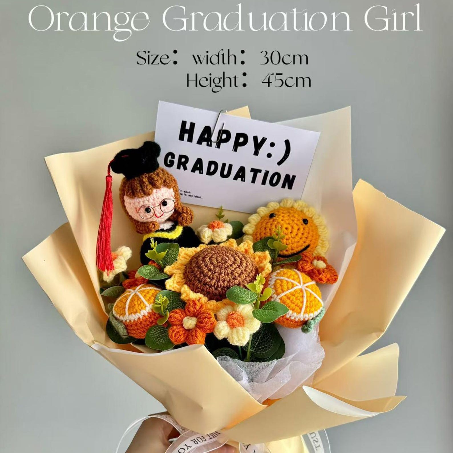 Handmade Crochet Graduation Bouquet with Knitted Graduate Plush Sunflower Keepsake Gift for Kids Graduates