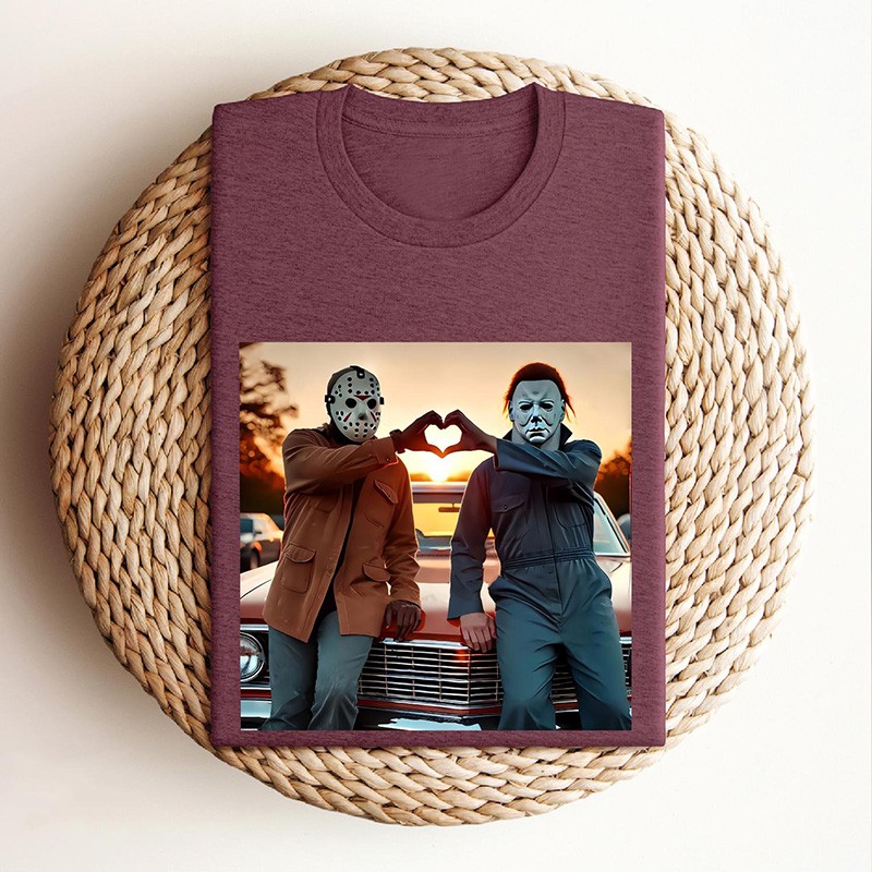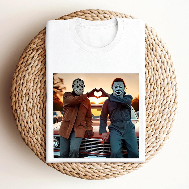 Michael and Jason Heart Hands Horror Movie Shirt Funny Halloween Shirt
