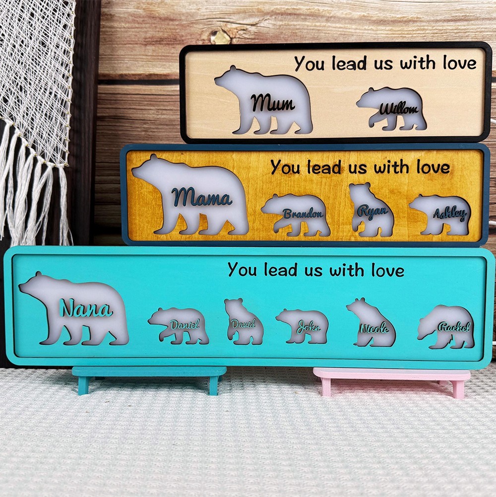 Personalized Bear Family Night Light With Kids Name Keepsake Gifts For Mom Grandma