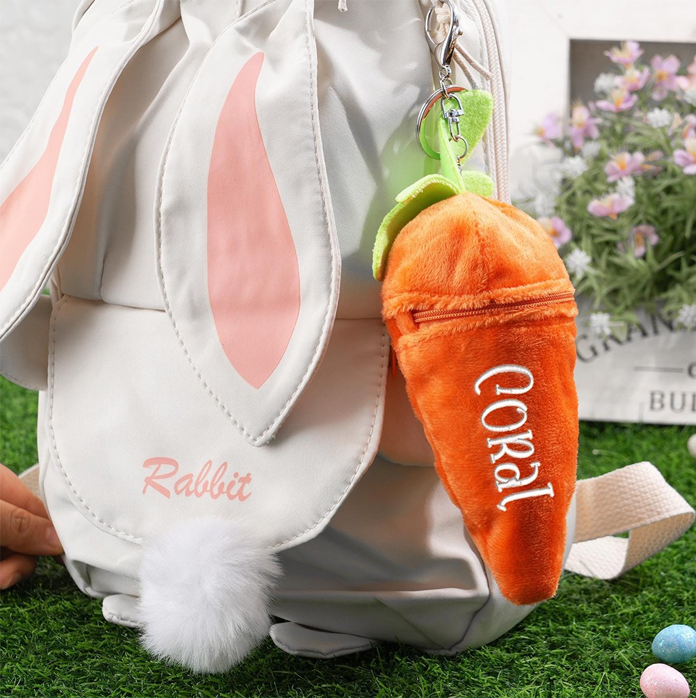 Personalized Bunny Rabbit: Plush Reversible Carrot Keychain, Custom Stuffed Animal Keychain, Easter Gifts