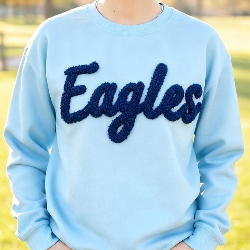 Personalized Chenille Yarn Embroidered Sports Team Sweatshirt, High School Teams, Eagles, Colts spirit, custom name Chenille Patch, Cheer mom, Team Spirit, school spirit, school uniform, game day sweatshirt