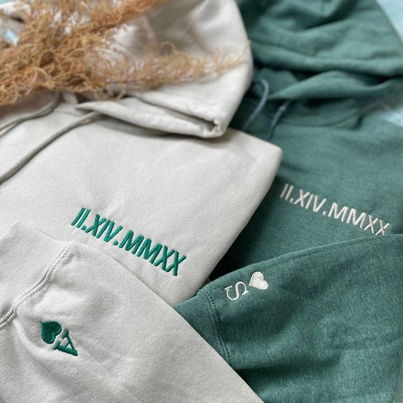 Custom embroidery hoodies with Roman numerals and initials on the sleeve are the perfect gift for your significant other or friend. True to size and delivered in time, these embroidery hoodies will help you shine on any occasion. Anniversary day, Valentines day, Christmas Day, Engagement Day, or Honeymoon Vacation are definitely the missing pieces to help you create long-lasting memories.