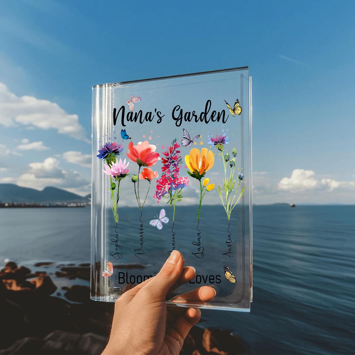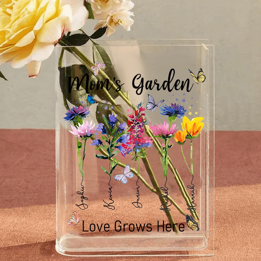 Personalized Grandma's Garden Birth Month Flower Acrylic Book Vase With Grandkids Name Meaningful Gifts For Mom Grandma