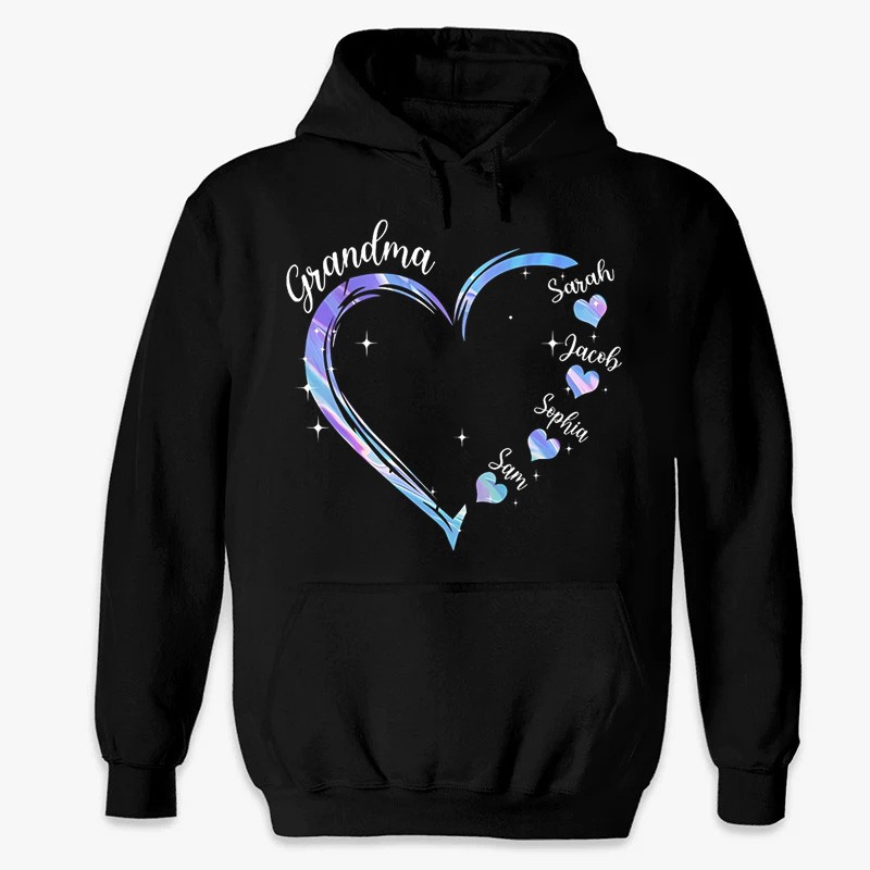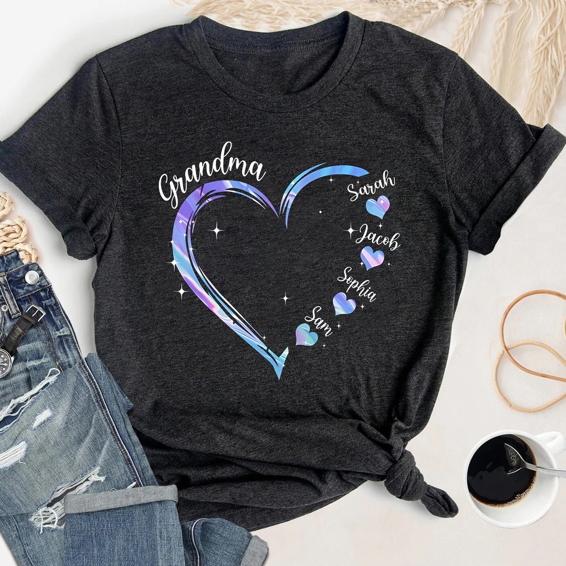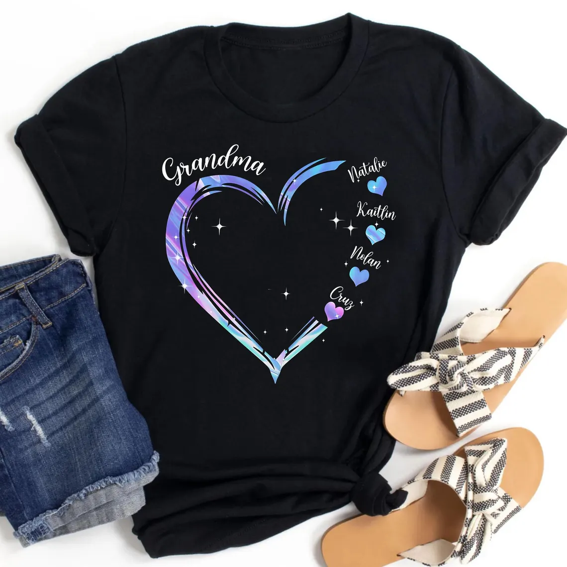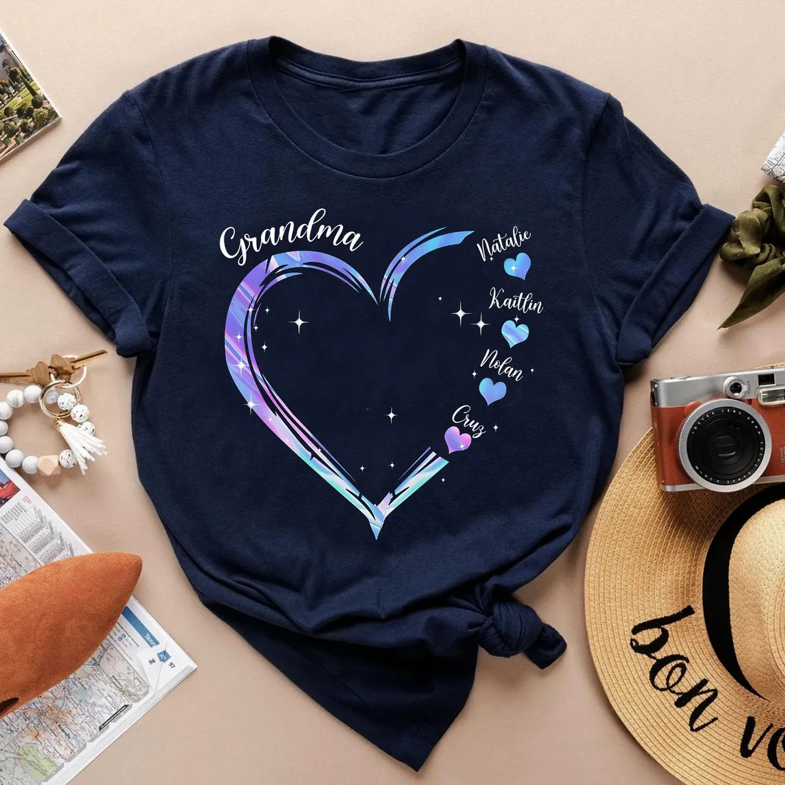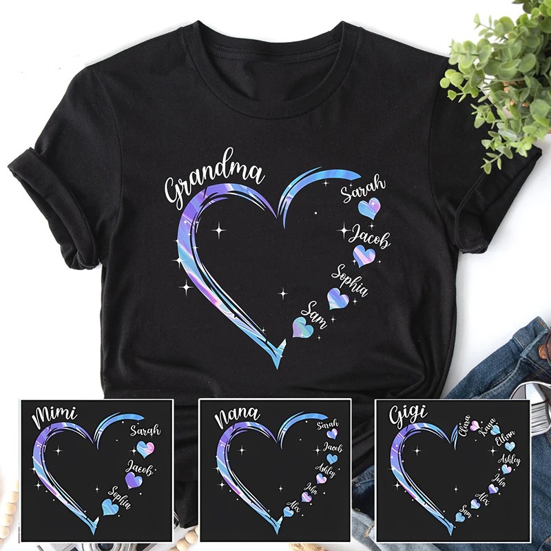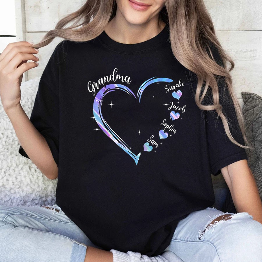 Personalized Grandma with Grandkids Names Hearts Shirt Gift For Grandma