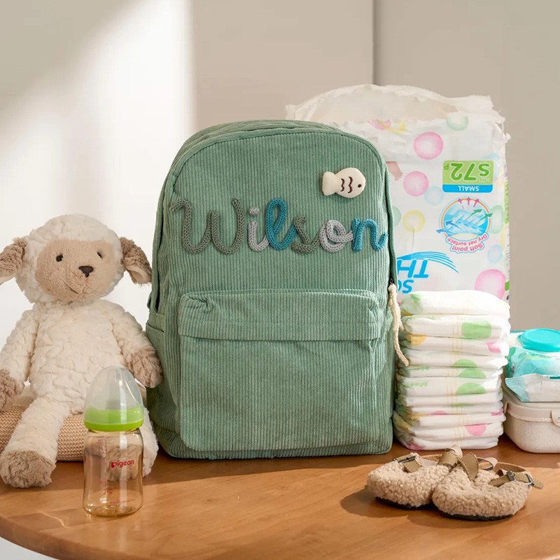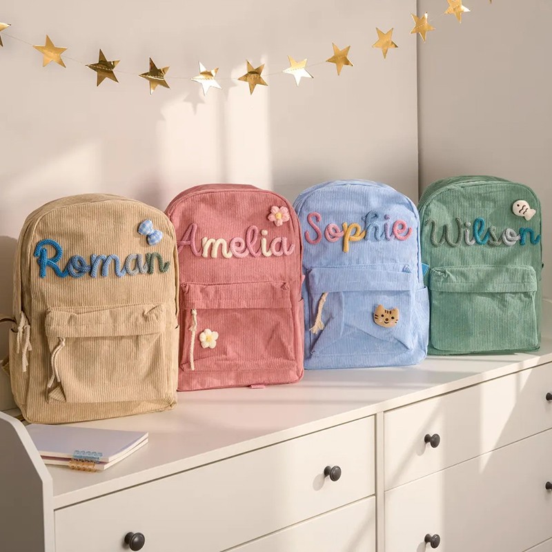 Made from soft, durable corduroy, it’s both sturdy and comfortable for little shoulders.