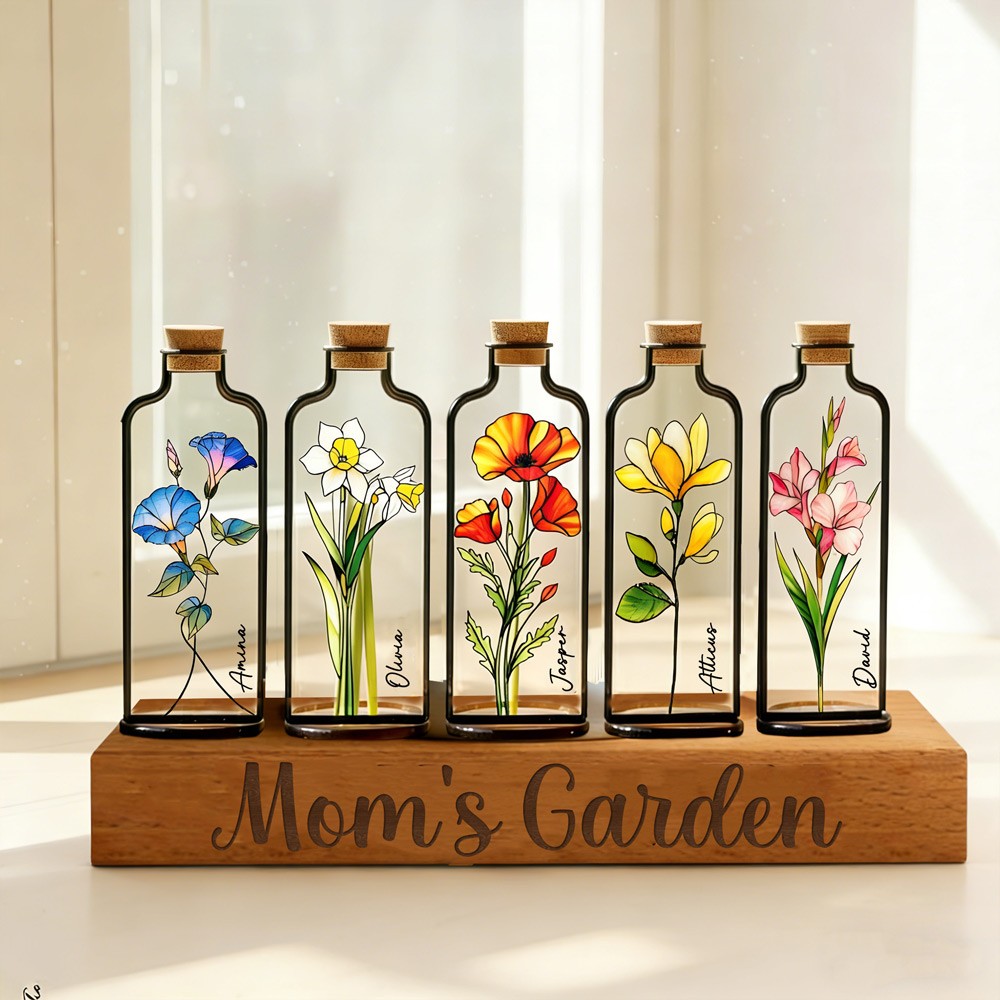 Personalized Mama's Garden Stained Glass Birth Month Flower Vase With Kids Name Thoughtful Gifts For Mom Grandma