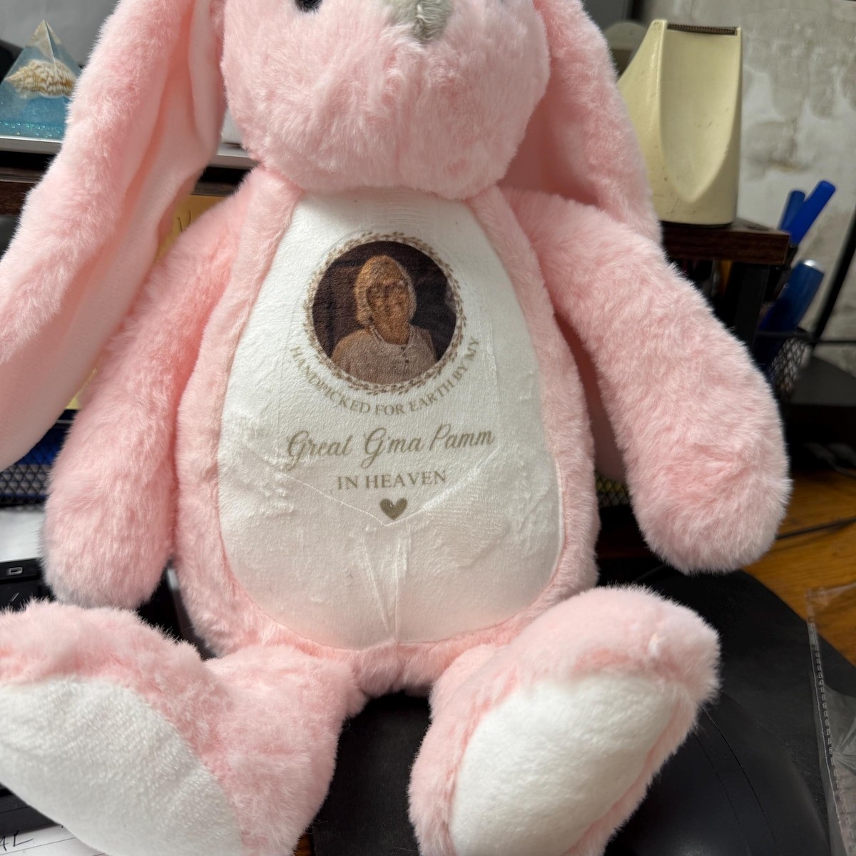 Personalized Memorial Bunny with Photo - Remembrance Keepsake