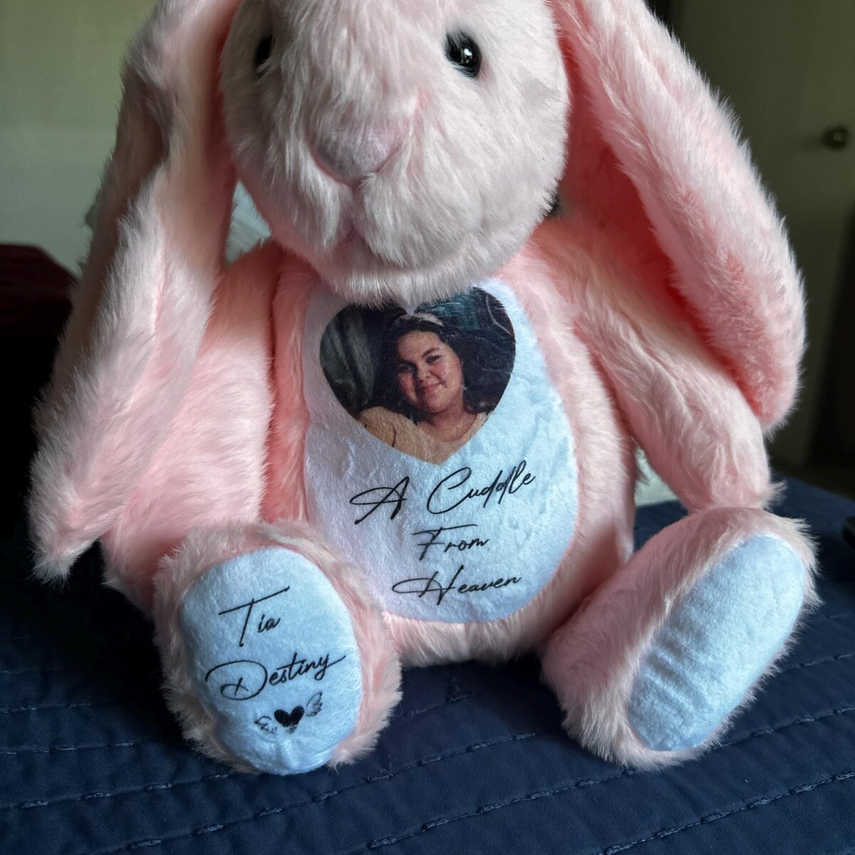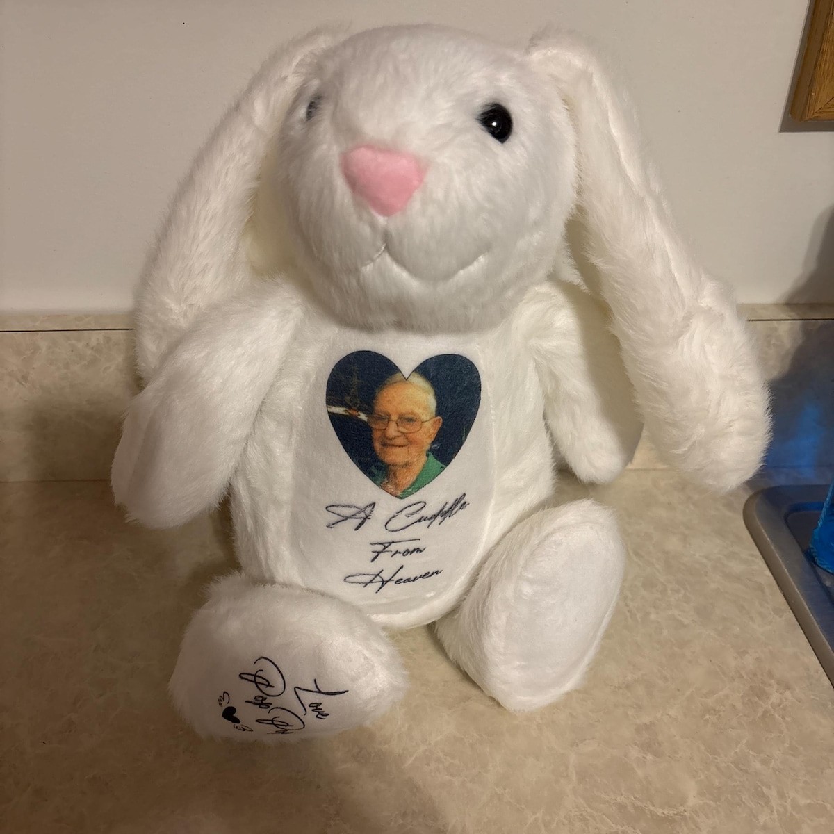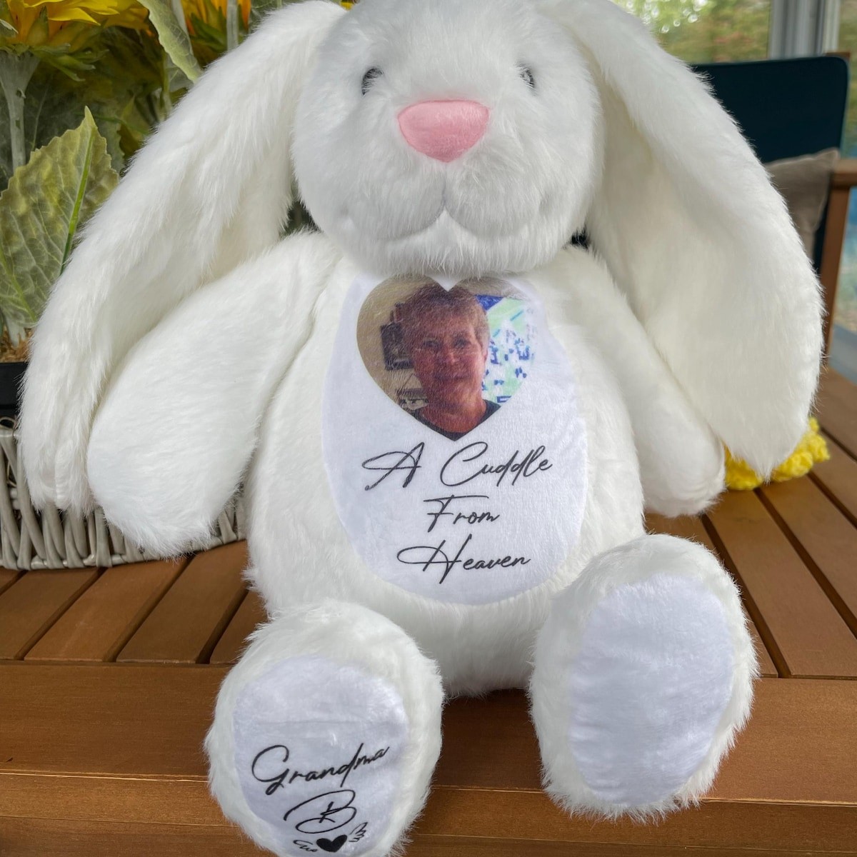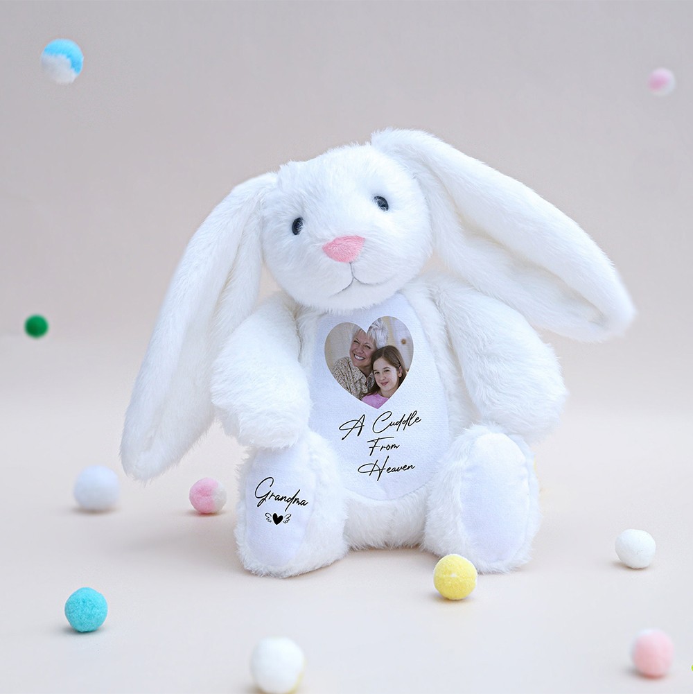 Personalized Memorial Bunny with Photo - Remembrance Keepsake