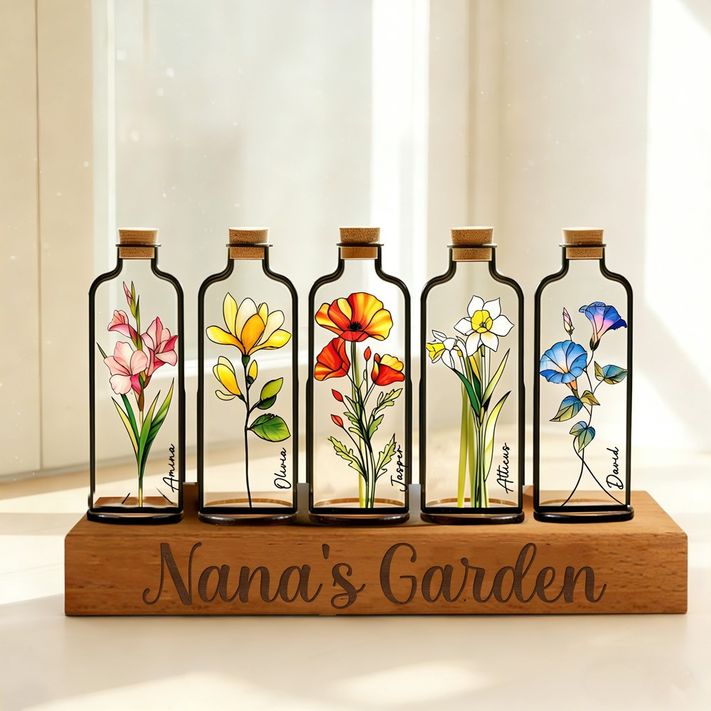 Personalized Mom's Garden Stained Glass Birth Month Flower Vase With Kids Name Thoughtful Gifts For Mom Grandma