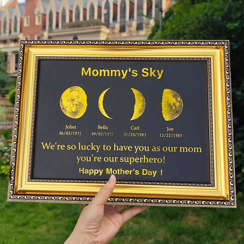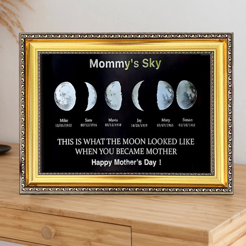 Personalized Moon Phase Frame with Kids Names and Birth Moon For Mother's Day Gift