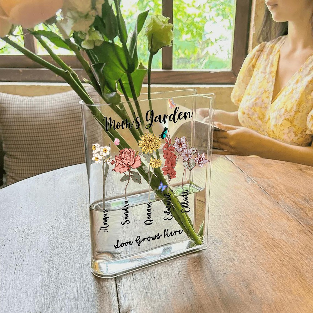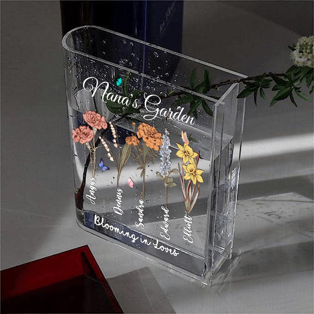 Personalized Nana's Garden Birth Month Flower Book Vase With Grandkids Name Keepsake Gifts For Mom Grandma