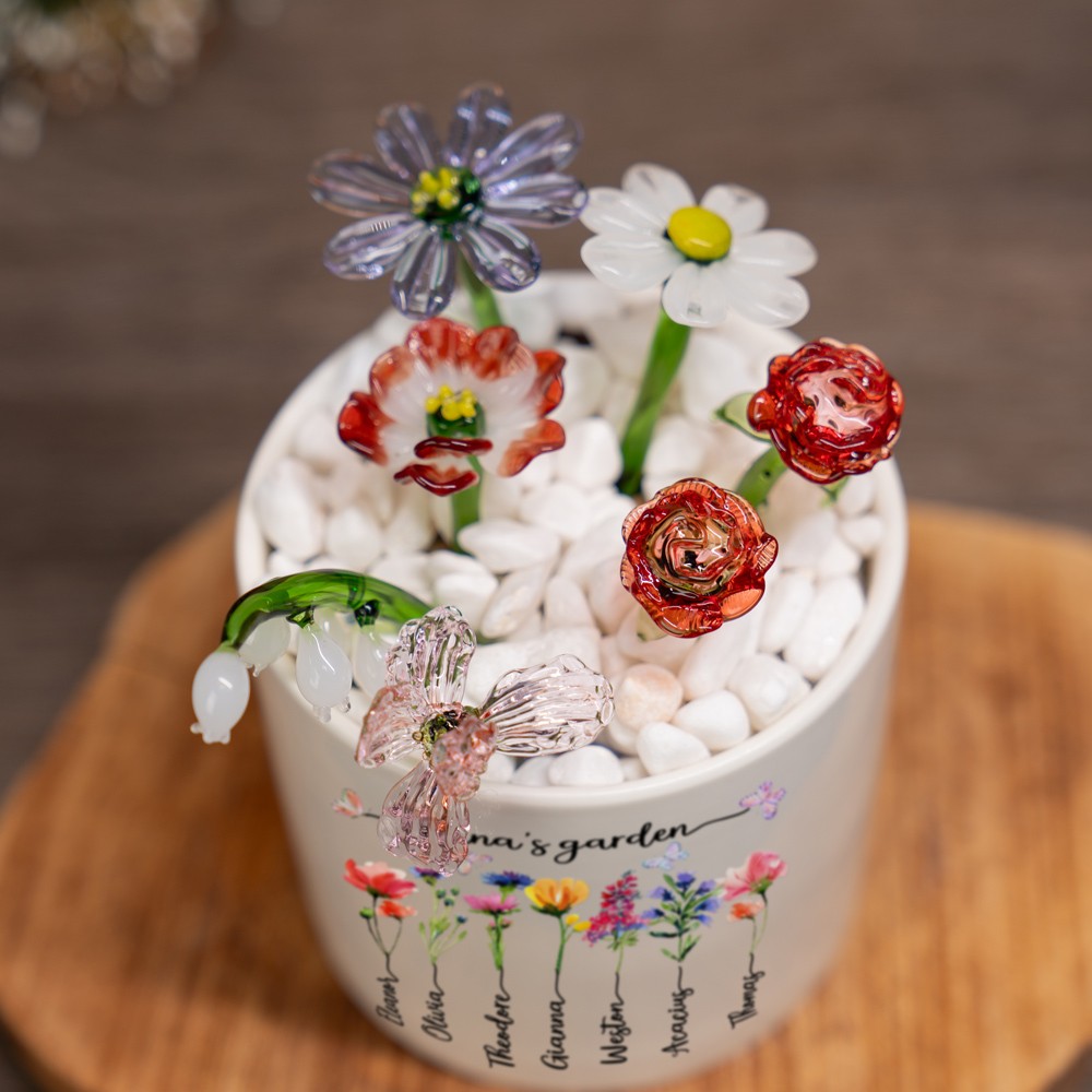 Personalized Nanny's Garden Birth Flower Pot with Grandkids Names Keepsake Gifts for Grandma Mom Christmas Gift