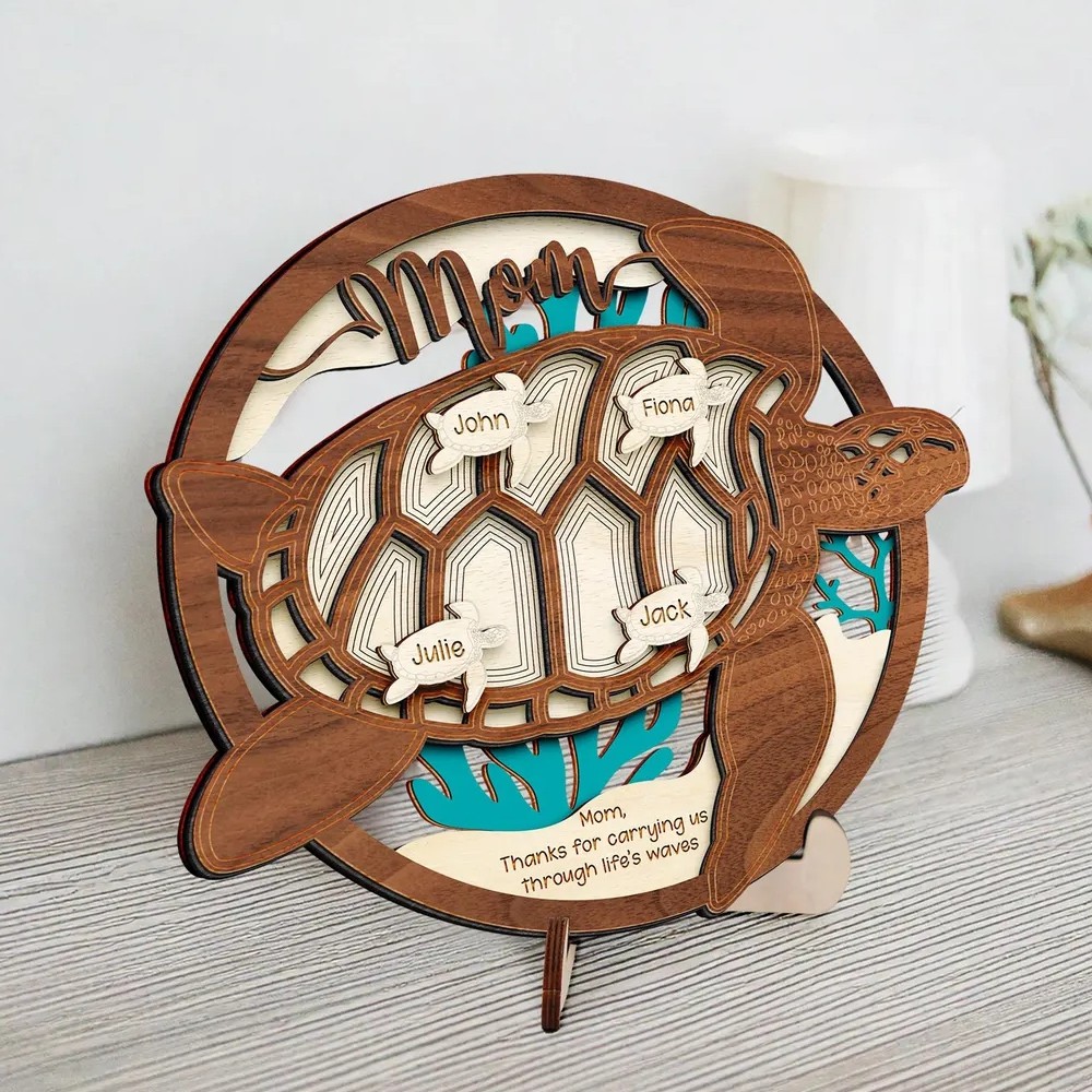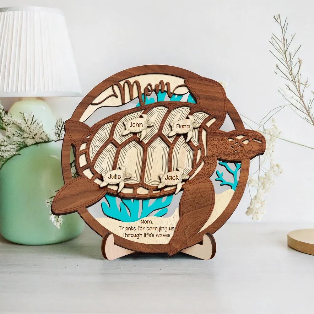 Personalized Sea Turtle Wood Sign Gift for Mom or Grandma