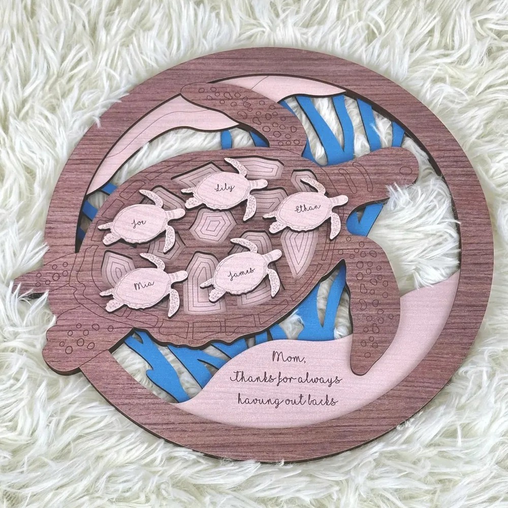 Thanks For Having Our Backs Personalized Sea Turtle Wood Sign Gift for Mom or Grandma