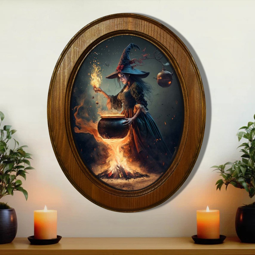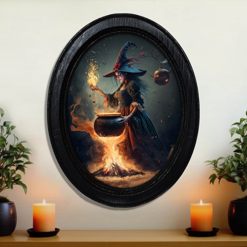 Witch Halloween Black Oval Gothic Style Wooden Frame Halloween Decor
