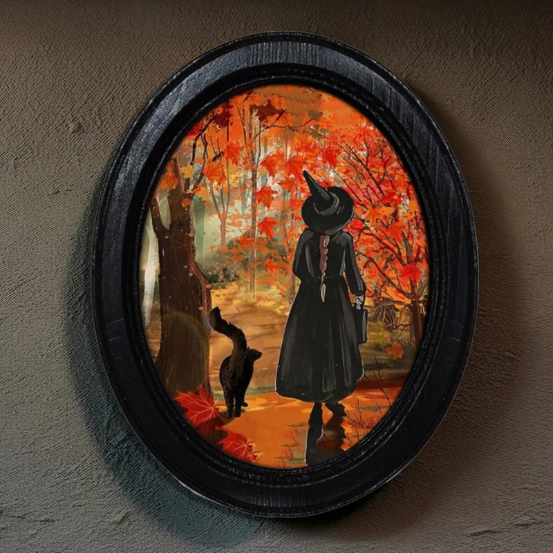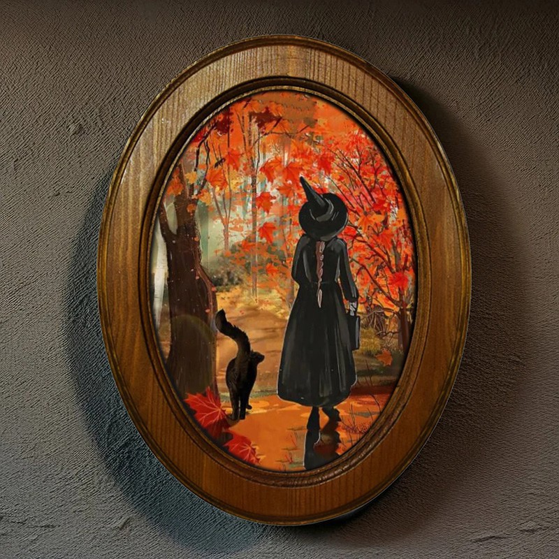 Witch Halloween Black Oval Wooden Frame Halloween Decor