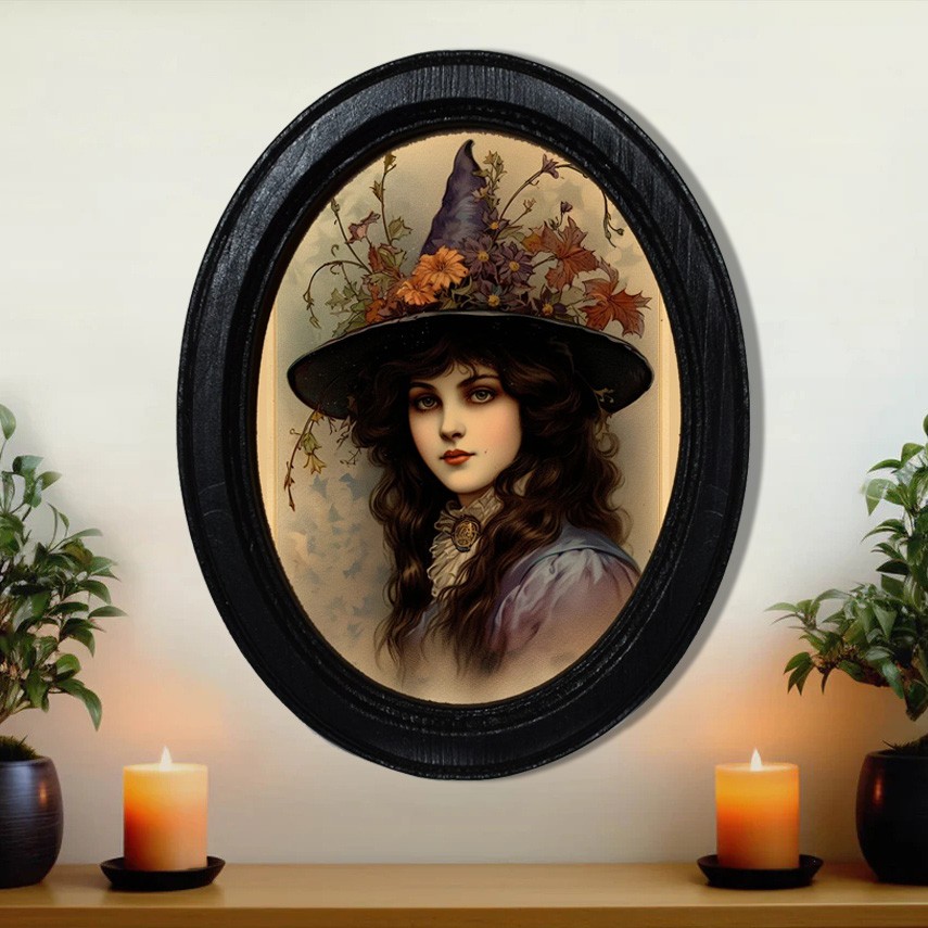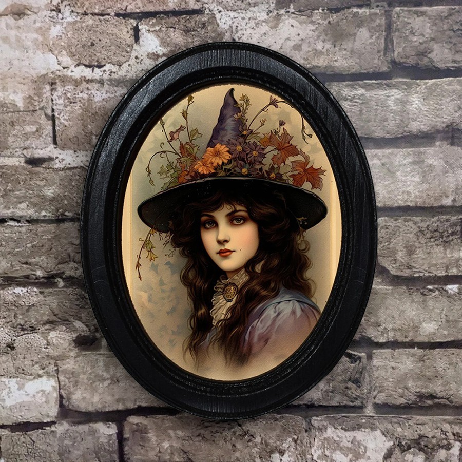 Witch Halloween Black Oval Wooden Frame Halloween Decor